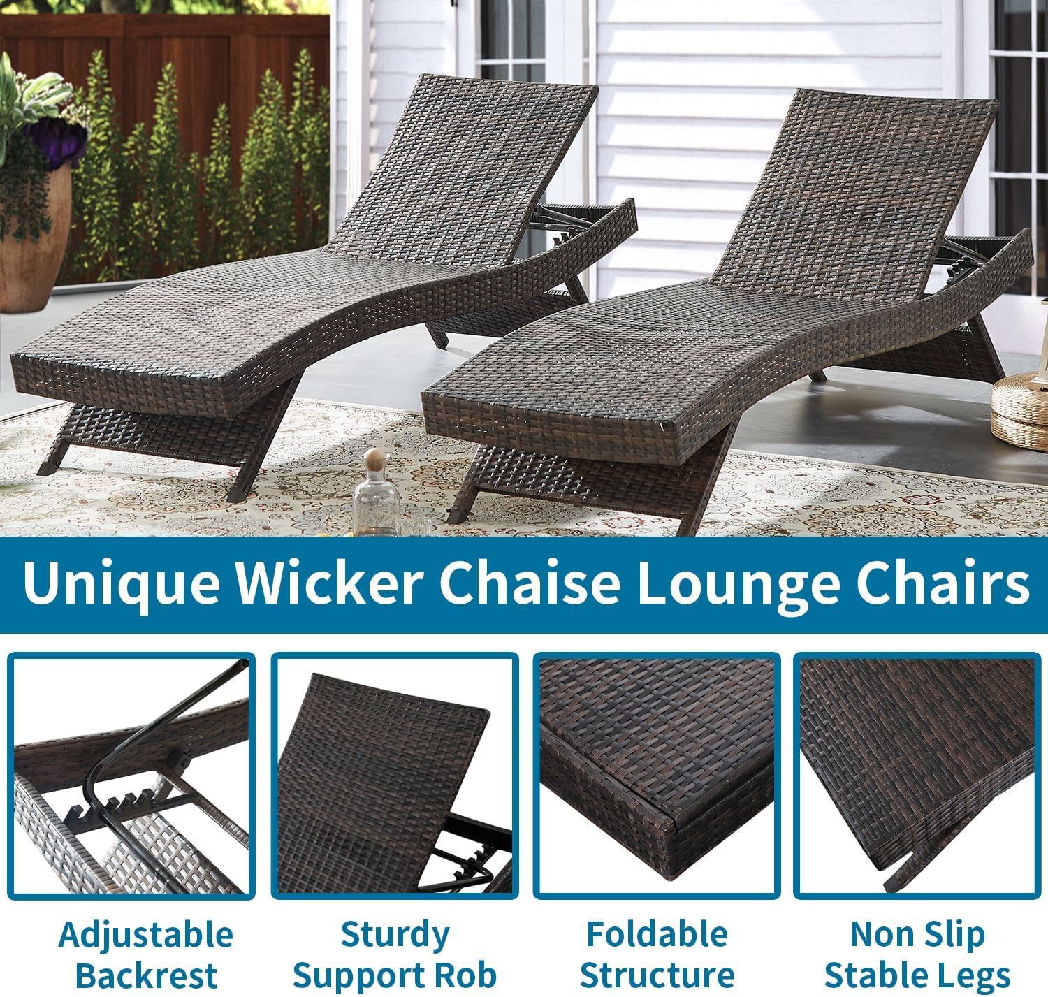 79'' Long Reclining Chaise Lounge Set (Set of 2), Outdoor PE Rattan Adjustable Recliner with 5-Level Backrest, Weatherproof Wicker Lounge Chair for Patio, Backyard, Beach & Poolside