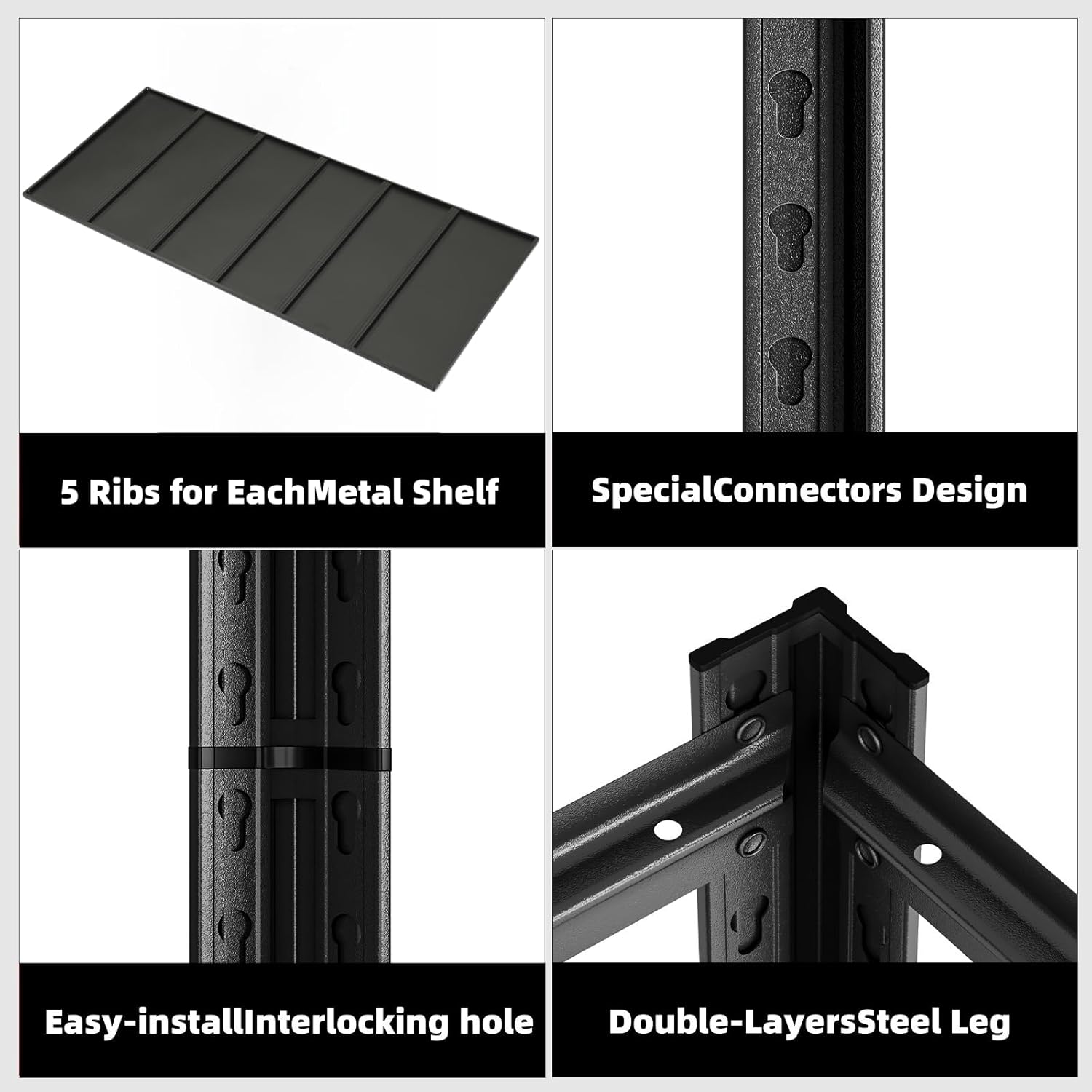 LI JIU HOME garage shelving measures 6T 62 "W x 24 "D x 84 "H, providing you with a large enough storage space. You can use your imagination to customize your own storage space. The garage storage can be used to store not only large items such as tires and generators, but also small accessories.