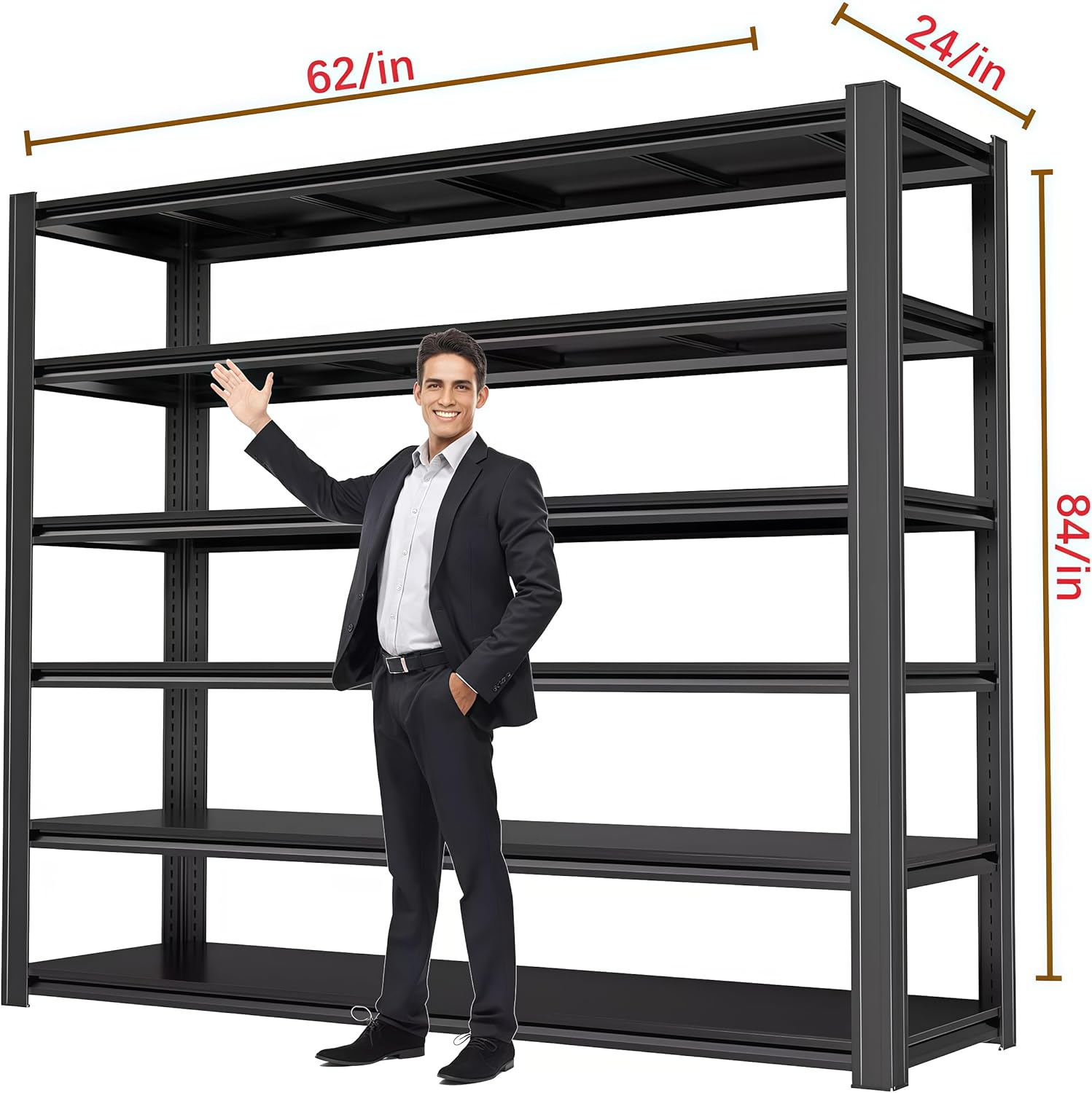 84“H 6T Garage Shelving Heavy Duty Storage Shelves 3500 LBS Adjustable Metal Shelving Uints and Storage for Garage,Warehouse,School,Commercial,Business, 62 "W x 24 "D x 84 "H