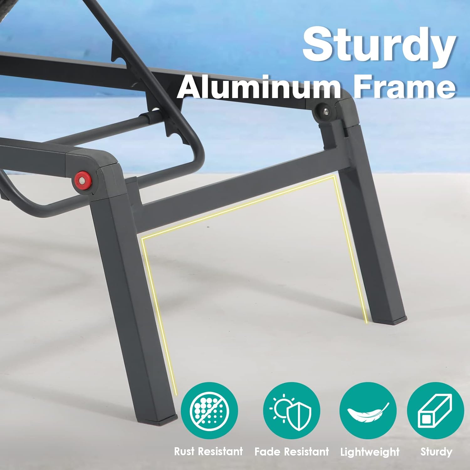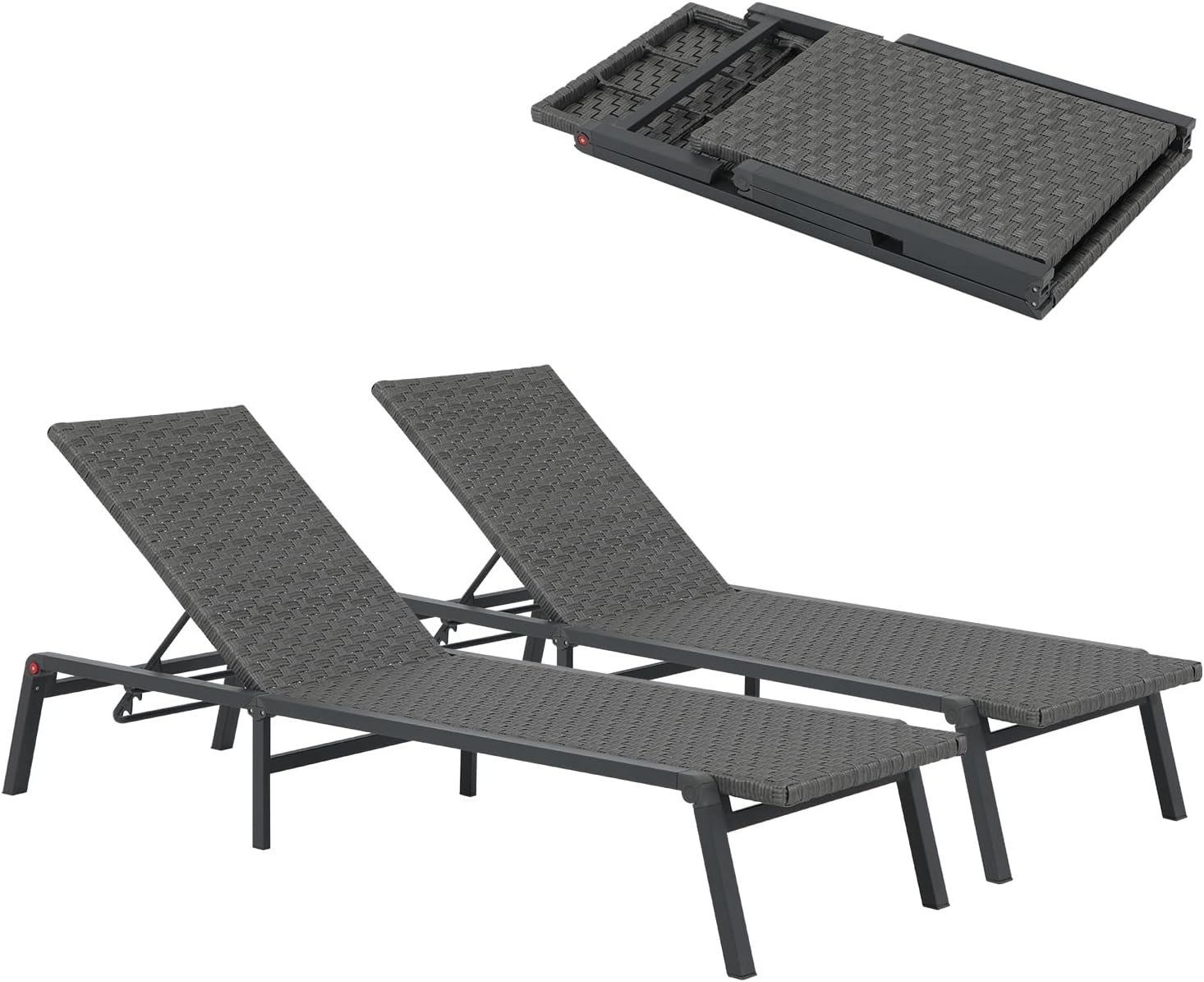 Patiorama Patio Chaise Lounge Set of 2, Aluminum Outdoor Folding Lounge Chair, All-Weather PE Rattan Wicker Adjustable Reclining Lounge Chair for Outside,Portable Sun Lounger for Beach Lawn Pool-Grey