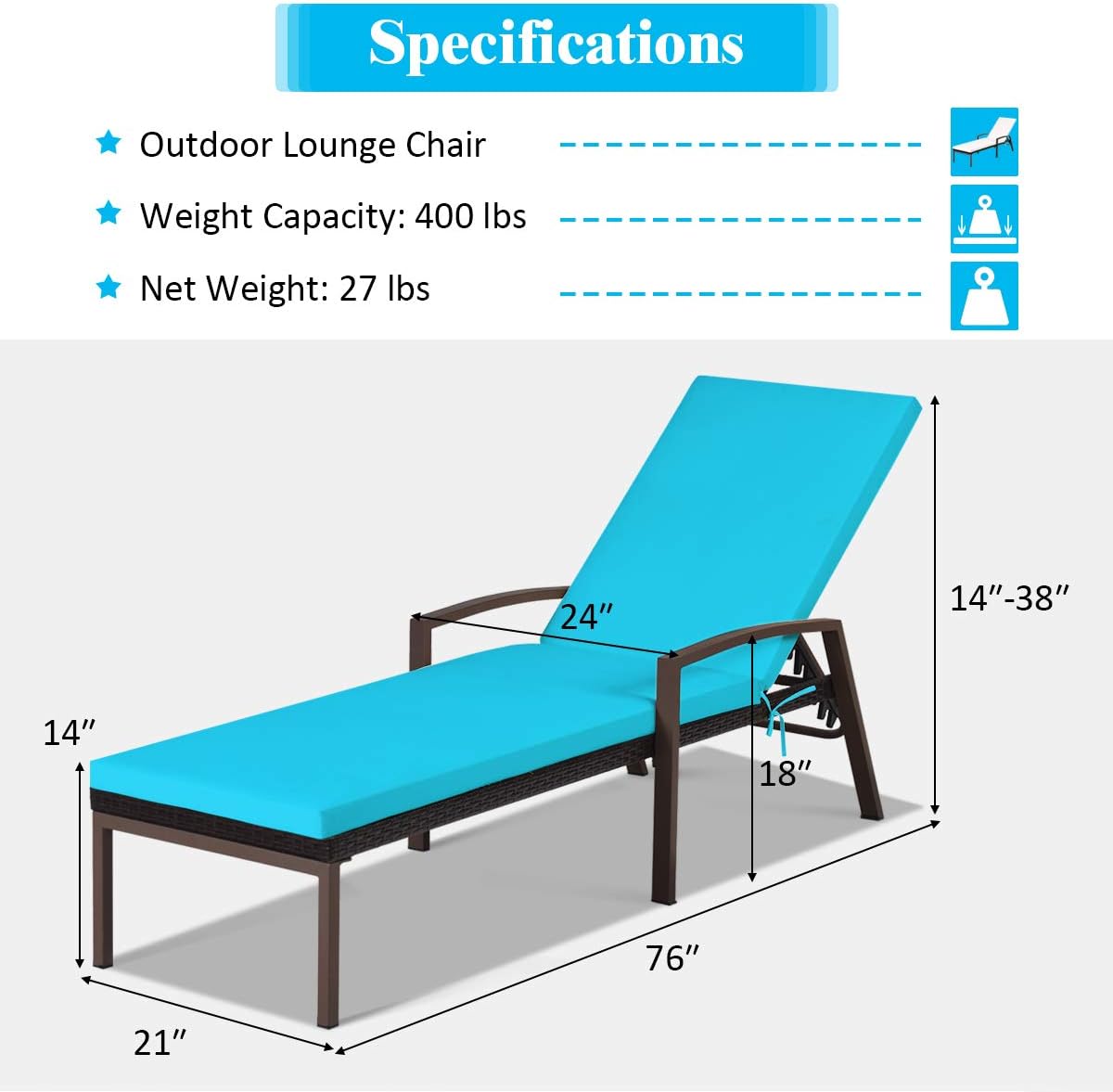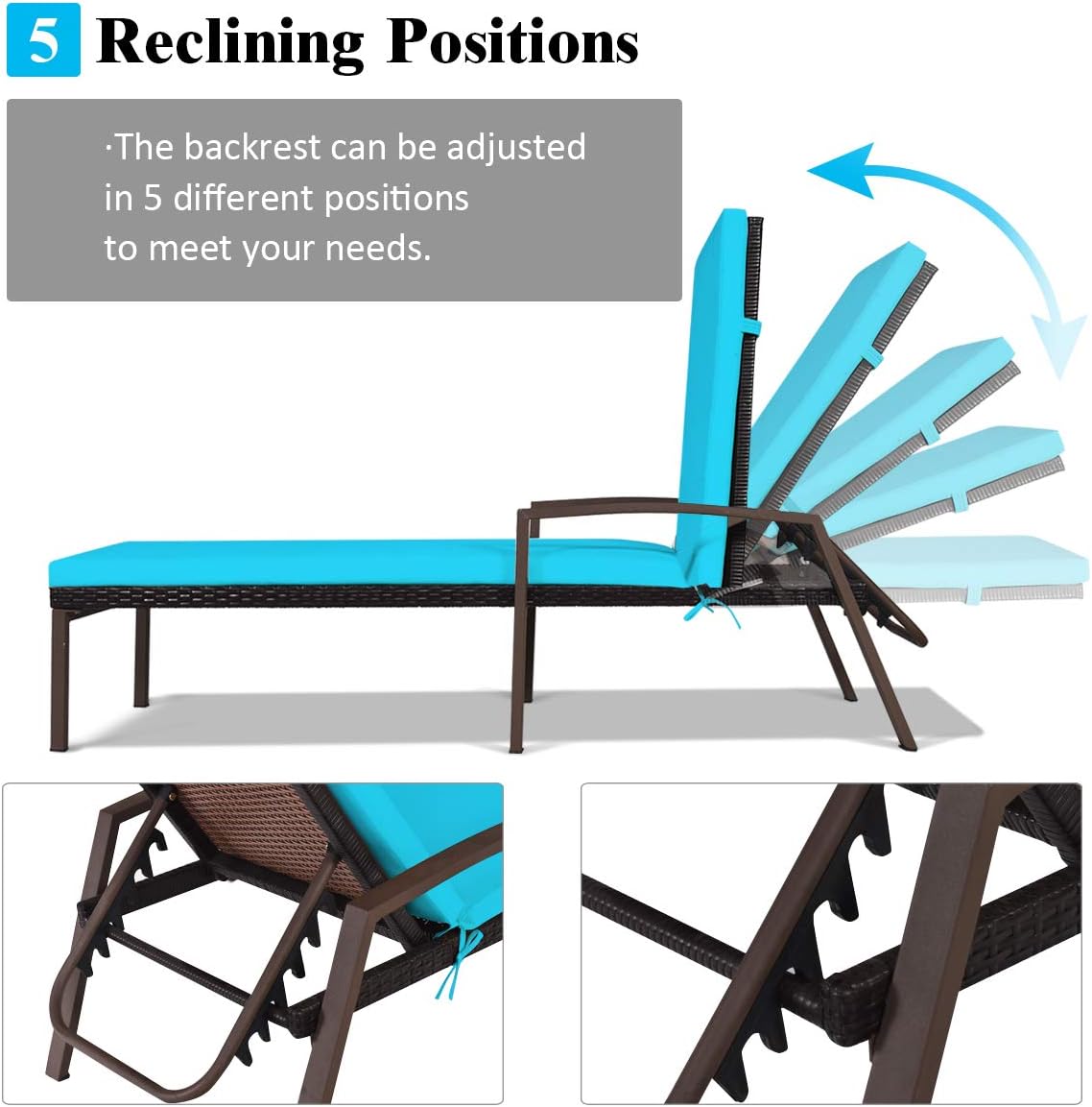 Tangkula 2 PCS Patio Rattan Chaise Lounge Chair, Outdoor Reclining Chaise with Cushion and Armrest, Wicker Sun Lounger with Adjustable Backrest for Garden, Balcony, Poolside